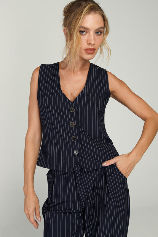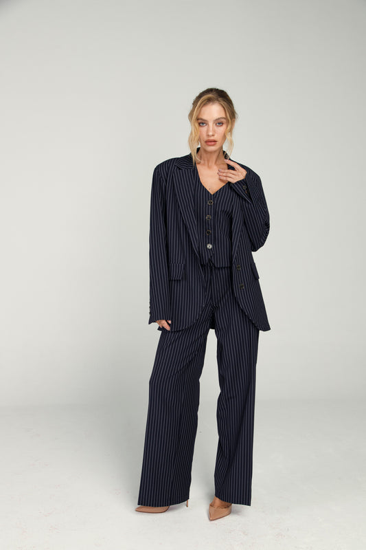 Colete de Alfaiataria Risca de Giz Azul Marinho "La Parisienne”