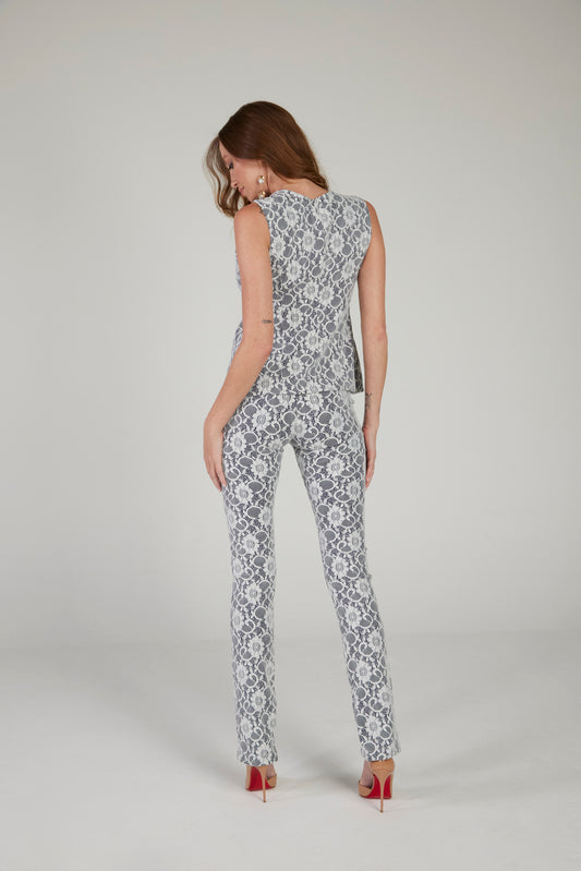 Calça de Alfaiataria Jacquard de Renda "Monaco"