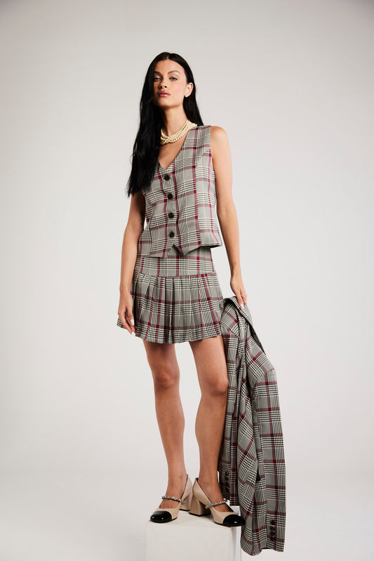 Conjunto de Alfaiataria Xadrez com Saia "Colette"